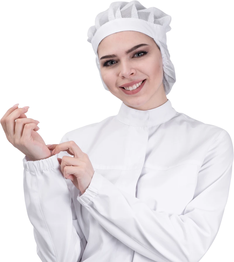 Цвет: белый Ткань: «Тередо» Состав: 67% полиэфир, 33% хлопок, пл. 195 г/м² ТР ТС 019/2011 ГОСТ 12.4.280-2014 Защитные свойства: Мп - защита от механических воздействий (прокол/порез) Ми – защита от механических воздействий (истираний) З – защита от общих производственных загрязнений Модель разработана в соответствии с международными требованиями безопасности пищевого производства согласно системе НАССР (ХАССП). • центральная потайная застежка на кнопки • рельефные швы от кокетки • воротник-стойка • втачной рукав с эластичной тесьмой • вентиляционные отверстия в нижней части оката рукава (сетка) • спинка с регулировкой по талии эластичной тесьмой • внутренние карманы (навесной нагрудный на правой полочке, нижние накладные)