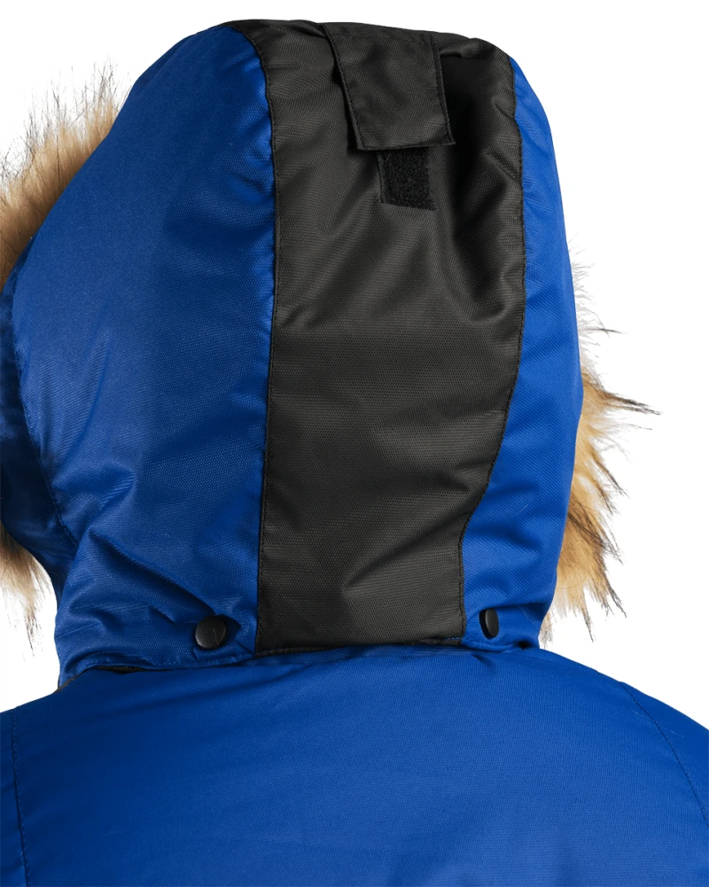 • съёмный капюшон на молнии с регулировкой объёма и меховой съёмной опушкой