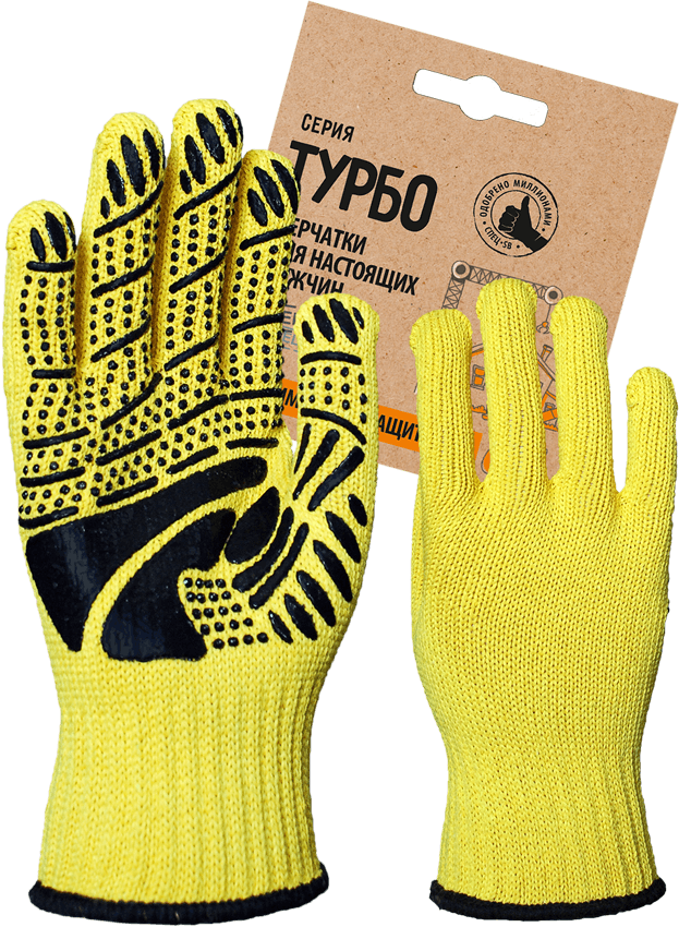 Покупайте Перчатки трикотажные с ПВХ "ТУРБО" желтый/черный, (Пер 051Я), картонный ярлык по цене 82 руб. оптом или в розницу в магазине спецодежды СнабТим. Большой выбор защитной одежды, СИЗ и других хозтоваров в Нижнекамске. Заказывайте онлайн или по телефону +7 (991) 190-59-22
